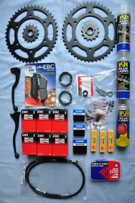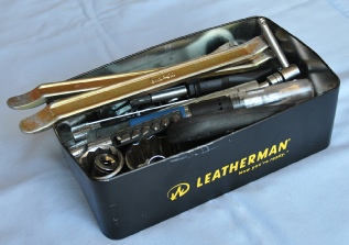 Firstly I have some explaining to do; just in case somebody makes a mistake and thinks that I know what I am doing!! I simply got myself a small tin on my work bench in the garage and each time I worked on the bikes I put the tools I used in the tin – I made sure I only used tools from the tin and If the tool wasn’t in the tin then I needed to buy it. As a result I have a tool tin that weighs in at 3kgs. I know that it’s over kill but split between two bikes it’s not so bad. Trouble is that having been a builder for ever, I strongly believe in sods law – with a van full of tools – the one you sodding need is always at home! At least by taking all my tools I know what I can do before I start needing to look for help.