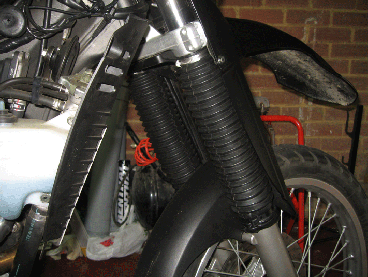 Remove the forks and strip down, replace the fork seals and reassemble having fitted