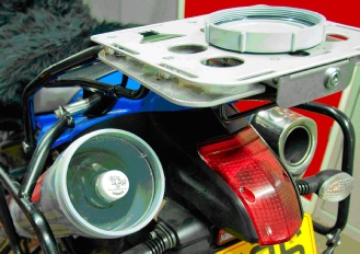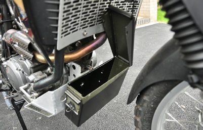 Paul’s bike has a specially fabricated fuel carrier fixed to the left side pillion