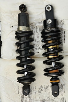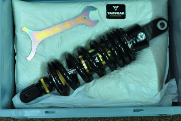 REAR SUSPENSION At first we thought the cost to replace the rear shocks would be prohibitive so instead we planned to re-spring each unit with a better quality progressive spring. After removing the shock on Paul’s bike (It’s done 9k miles) and realising what was involved and noticing wear on the OE unit we decided we did needed to re-shock the bikes.It wasn’t too hard to decide which manufacturer to go for, we had discounted the Swedish brand as a friend has had loads of trouble with his shock and in fact binned it in the USA. I called Will at FTR Suspension while looking into buying Springs and he told me about Yacugar. To cut to the chase Yacuger was formed when White power moved its factory out of Holland leaving behind the work force.It must have been a no brainer to put all that skill and engineering knowledge to good use. FTR are a dealer for Yacugar so I ordered one shock. You state the rider weight and in our case luggage as well and the shock is built to order – when it arrived as soon as I opened the box I had decided to get one for Angie’s bike. Talk about quality. With the unit fitted I was able to ride both bikes back to back and to be honest it’s a revelation. I took my time to get the static sag spot on, this was made easy with the C-spanner that came with the shock. I’m no road tester but the bike feels more stable in corners now and soaks up the bumps that had the OE unit chopping around. Another deciding factor is that the OE unit is non-rebuildable whereas the Yacugar is and will last a life time. Anyway – another shock ordered for Angie’s bike. Take a look at the pictures in our gallery and www.yacugar-suspension.co.uk