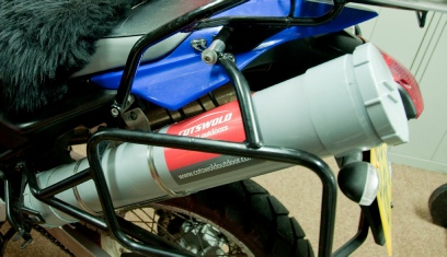 We both have small tail packs fitted to our pillion seats that carry a 10L Ortlieb